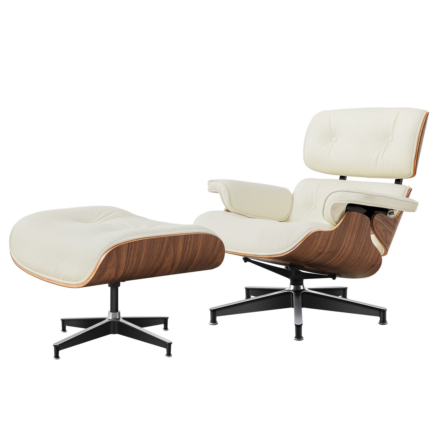 Crisp, clean and modern! The creamy beige leather on this version of our lounge chair is a crowd favorite among the sophisticated. This is our #3 best seller, and customers rave about the luscious look of the leather.